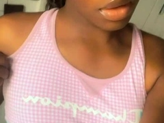 Amateur ebony licking a dick and gets her pussy masturbated