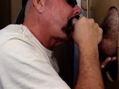 Moustache mature gay sucks gloryhole rod till cum in mouth