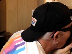 Real amateur gaydaddy sucks gloryhole dick in home closeup