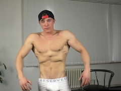 Handsome twink Larry McCormick flex his abs